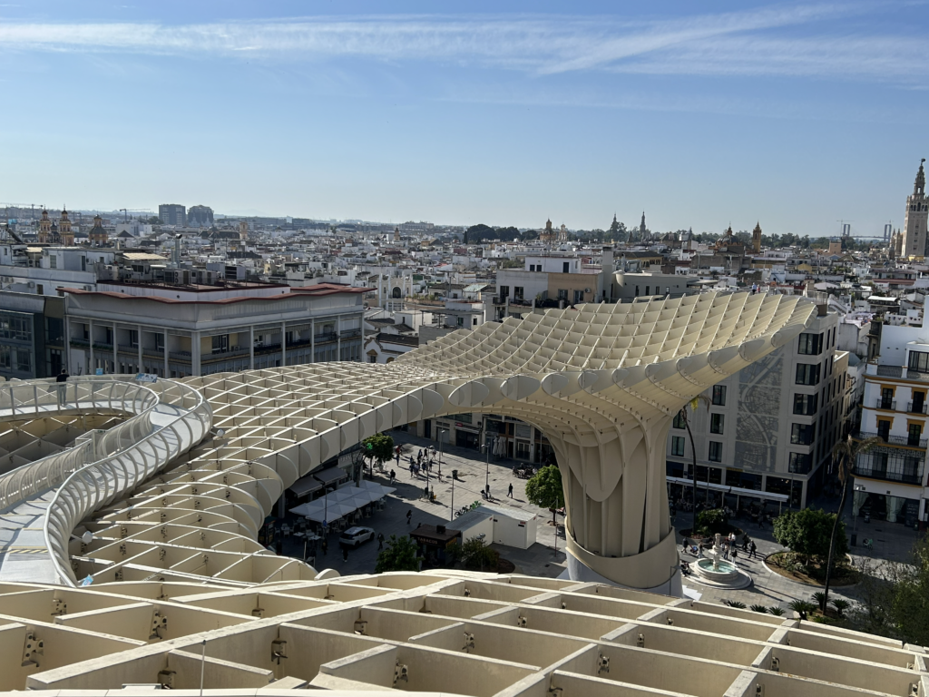 The main attraction is the breathtaking 360-degree panoramic view of Seville from the observation deck at the top of the parasol.